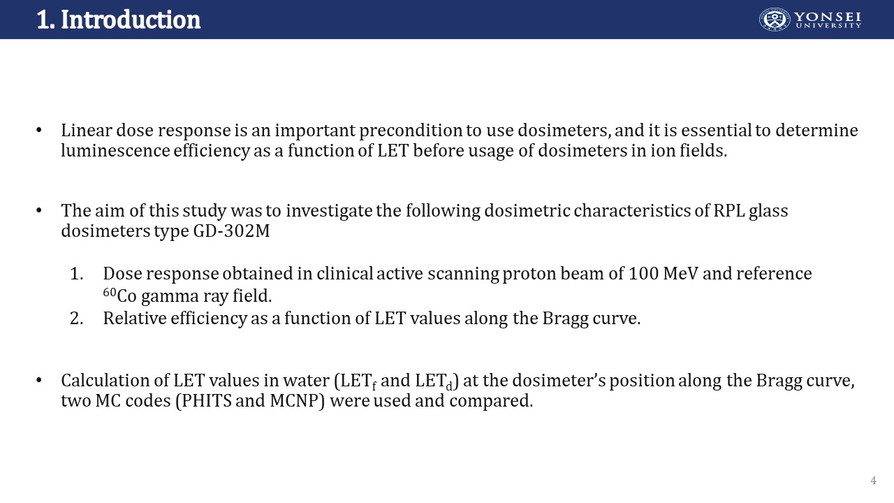 발표제목: Relative efficiency of radiophotoluminescent glass dosimeters in a scanning pencil proton beam