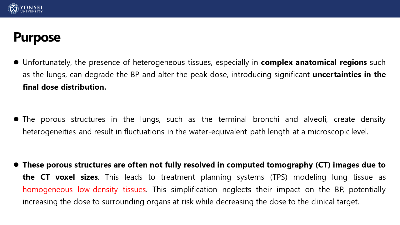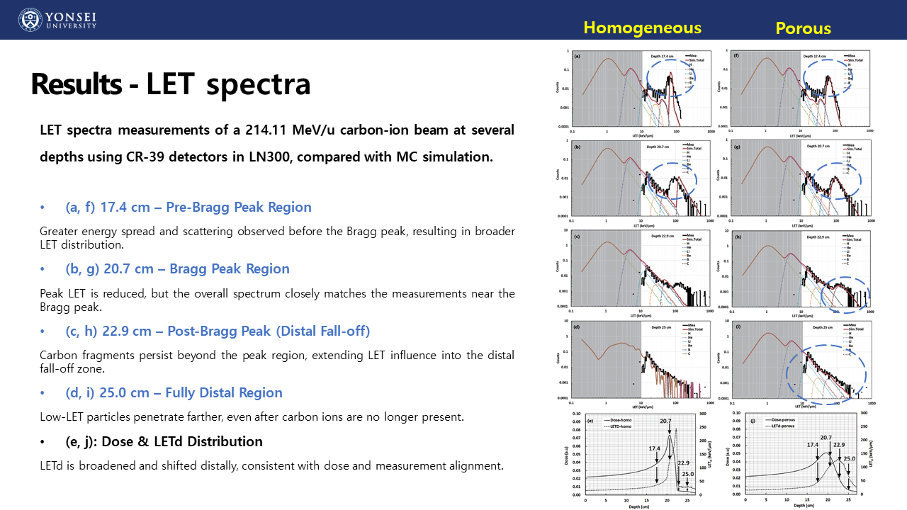 발표제목 : Impact of porous lung substitute on linear energy transfer (LET) assessed via Monte Carlo simulation and CR-39 measurement with a carbon-ion beam